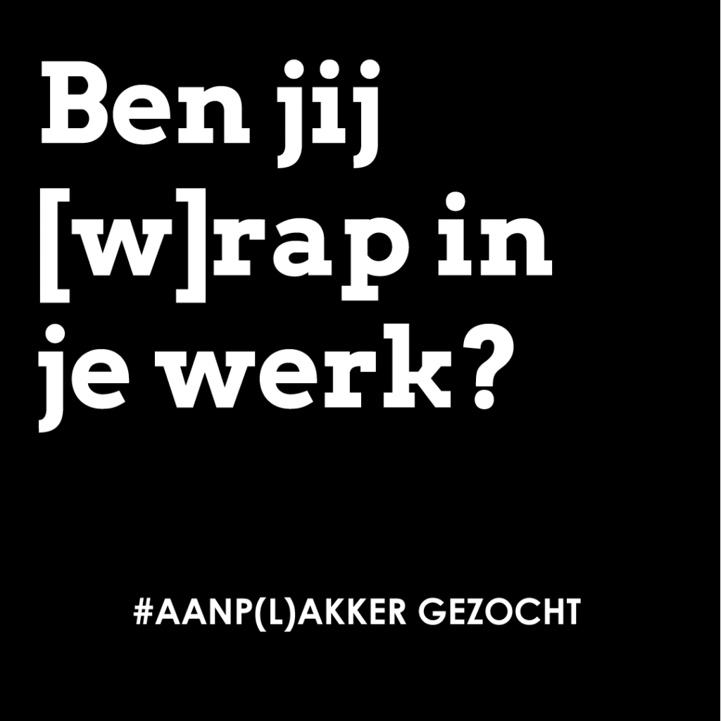 Ben jij [w]rap in je werk en wil je trots [sign] op wat je maakt? Dan zijn wij op zoek naar jou!